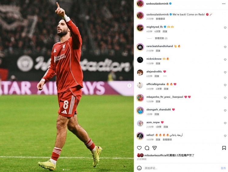 收场4连败,传射立功的索博斯洛伊社媒晒照庆祝:咱们记忆了!