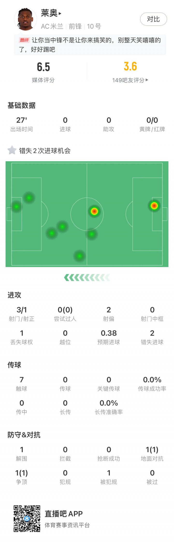 气东说念主!莱奥替补两次错失进球,门前踢疵+销耗莫德里奇绝佳传球