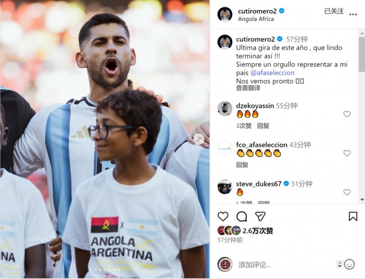 罗梅罗社媒:以奏效端正一年的国度队征途太微妙,很自豪为国出战