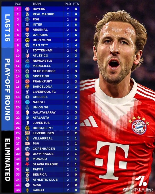 詹俊写谈:欧冠排位赛两轮后,数据统计机构opta最新的夺冠热点排行:阿森纳-利物浦-大巴黎-曼城-拜仁-巴萨-皇马。个东谈主如故和赛季前同样,合计大巴黎契机最大。你们呢?