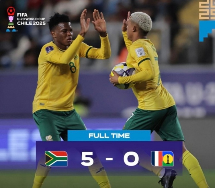 世青赛小组赛南非U20以5-0大捷新喀里多尼亚U20,升至小组第二