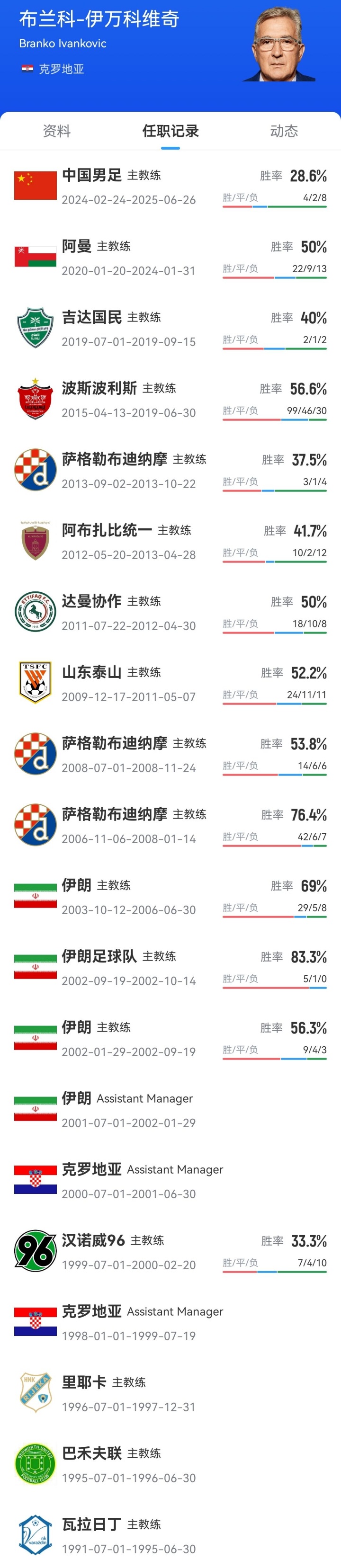 2025年10月,71岁伊万科维奇说明退休,4个月前这位国足原主帅下课。