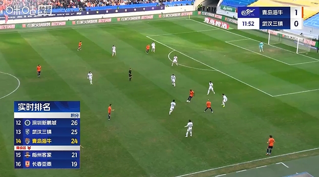 照此比分亚泰将提前左迁!兰克尔-泽补射破门,海牛1-0逾越三镇