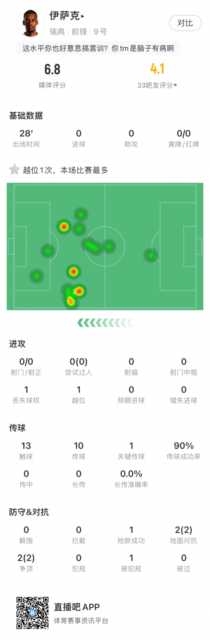 1.4亿瑞典第孤单价!伊萨克替补半小时0射门 本届世初赛于今0进球