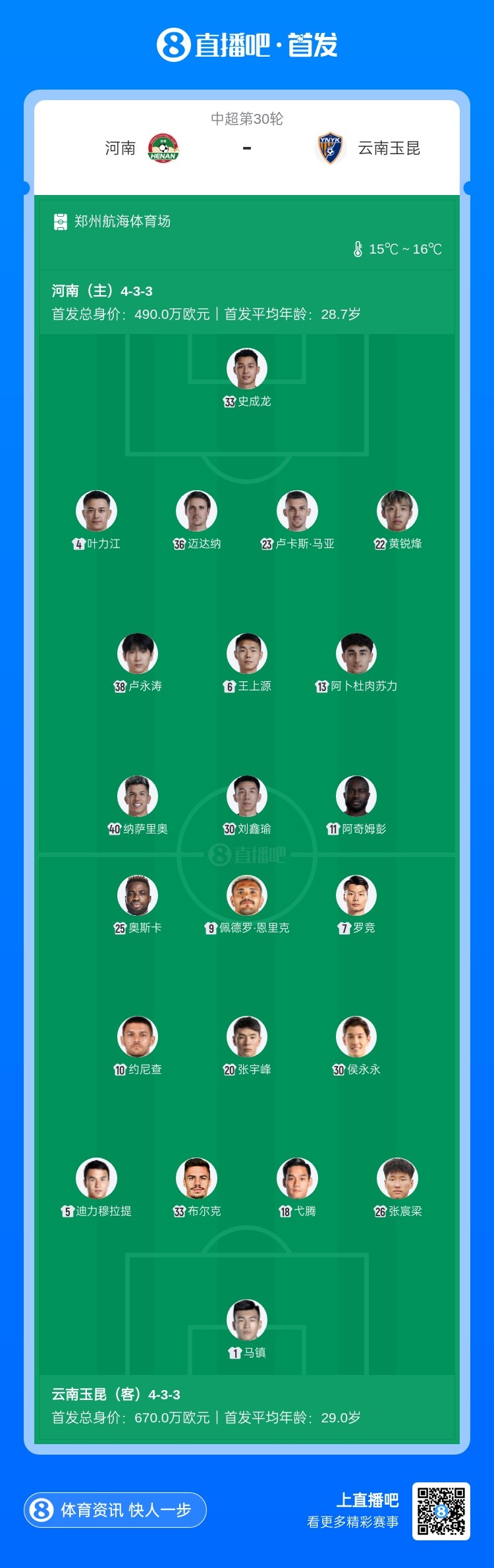 11月22日讯 北京时辰15:30,中超第30轮河南vs云南玉昆,比赛在郑州帆海知晓场打响!上半场,阿奇姆彭低射破门;半场限制前,史成龙送大礼,恩里克扳平比分!半场限制,河南暂1-1云南玉昆。