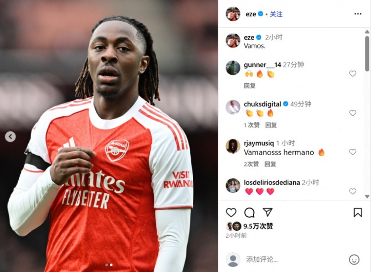 阿森纳登顶!埃泽社媒晒照庆祝到手:加油
