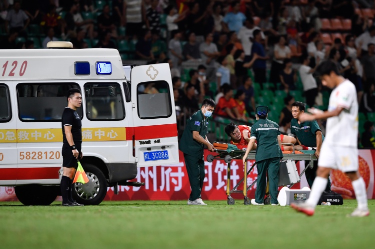 比赛第59分钟,自身球员在对方禁区内被蹬踏倒地,比赛未吹停,45号黄威高速回防,拼抢中与对方球员招架后受伤倒地不起,救护车再次入场将其送往病院。经会诊,黄威为右侧胫腓骨下段骨皮质断裂,断端分手错位,也将无法出战本赛季剩余赛事。