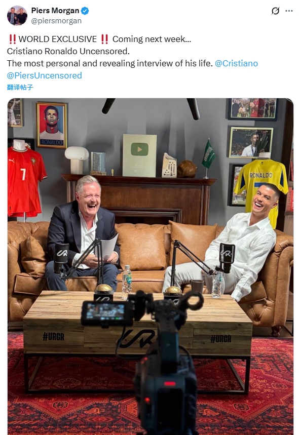 10月30日讯 知名主抓东说念主皮尔斯-摩根在社媒预报了我方下周将发布与葡萄牙巨星C罗进行的专访节目。