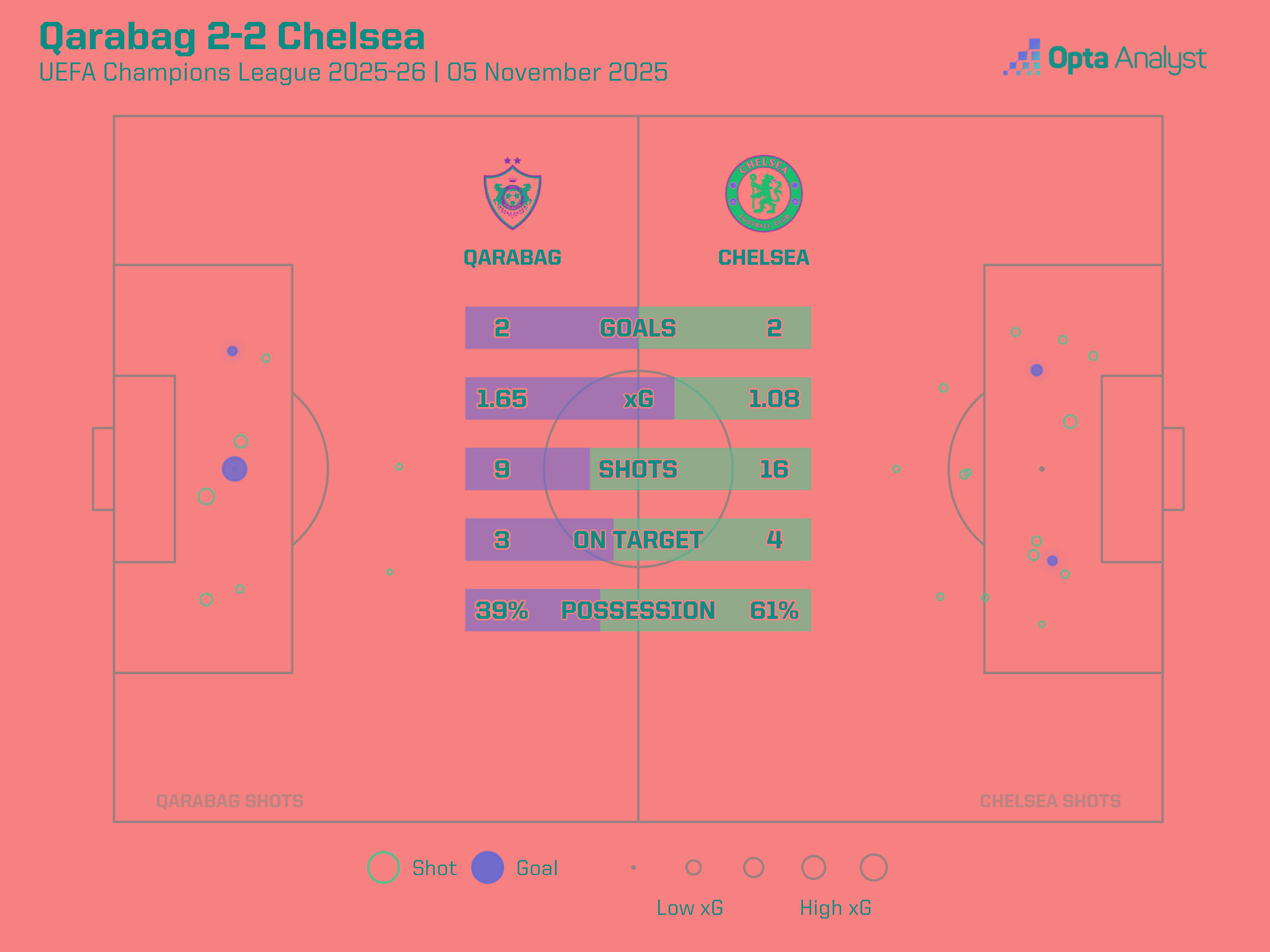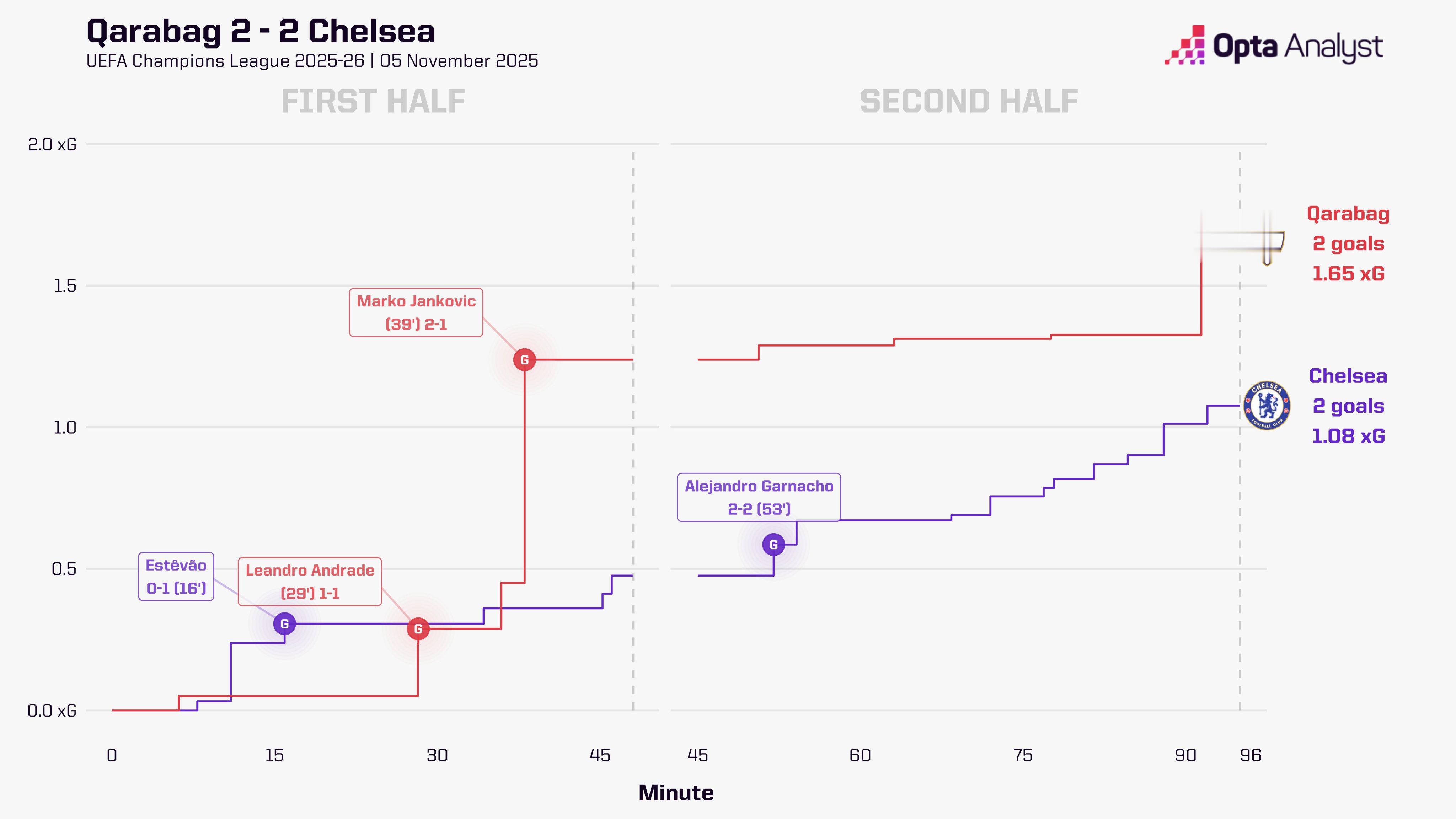 虎扑11月05日讯欧冠联赛阶段第四轮,卡拉巴赫2-2切尔西。