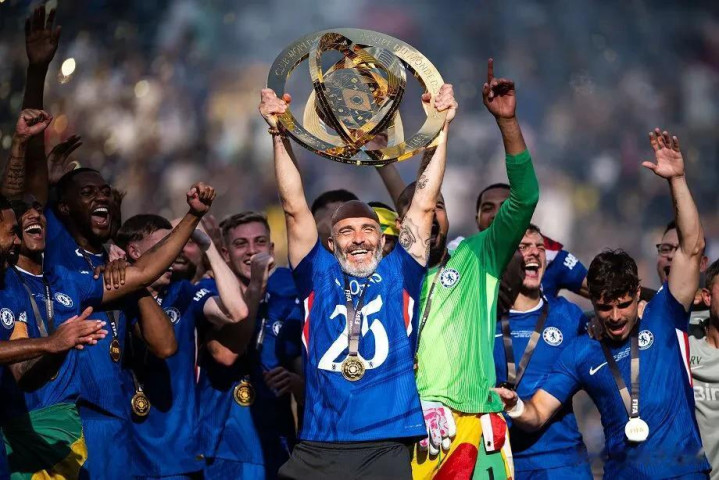 恩佐·马雷斯卡举起2025年世俱杯冠军奖杯