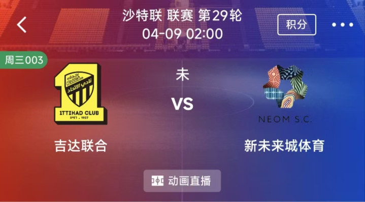 003沙职:吉达联合VS未来体育 时间:2026-04-09 02:00