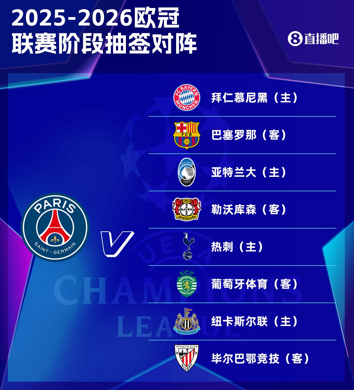 08月29日讯 新赛季欧冠联赛阶段抽签出炉,巴黎将对阵两支英超球队热刺和纽卡。